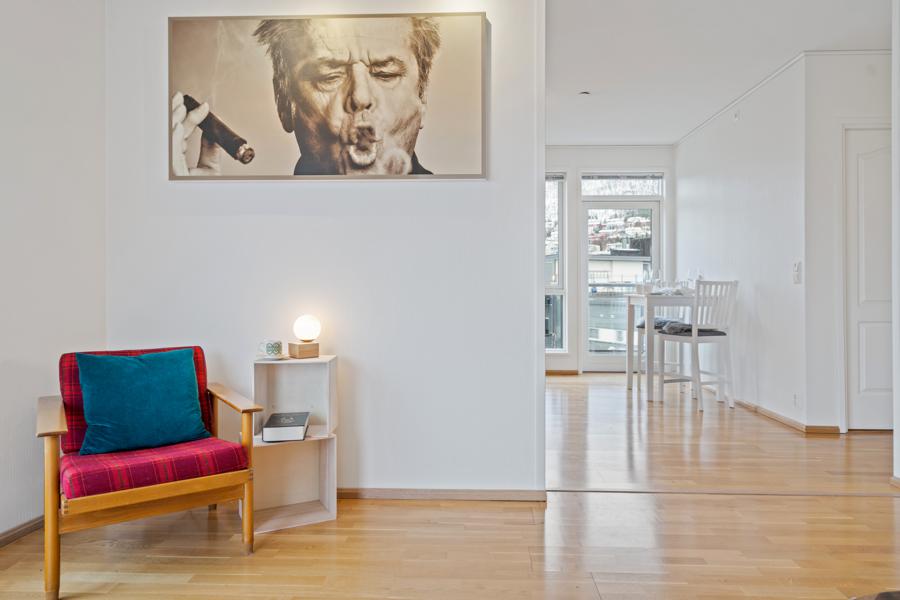 The apartment in Tomasjordnes 57 from 2006 have a size of 49 m² and contains among other things 1 bathroom and 1 bedroom.
