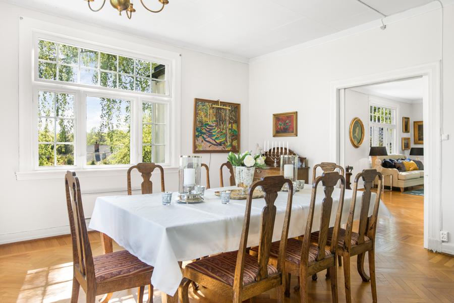 Huset i Arnebråtveien 17 fra 1920 har en størrelse på 216 m² og inneholder blant annet 4 bad og 5 soverom.