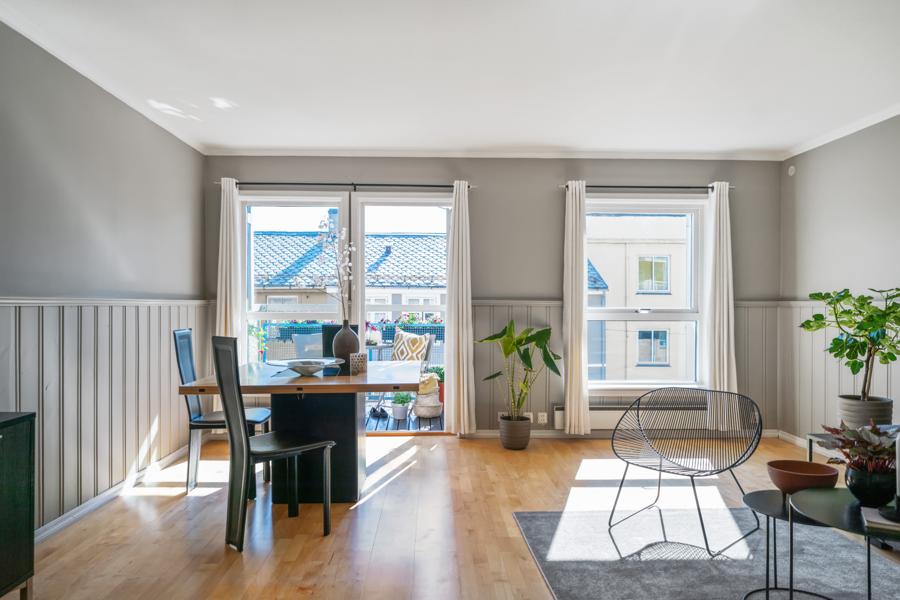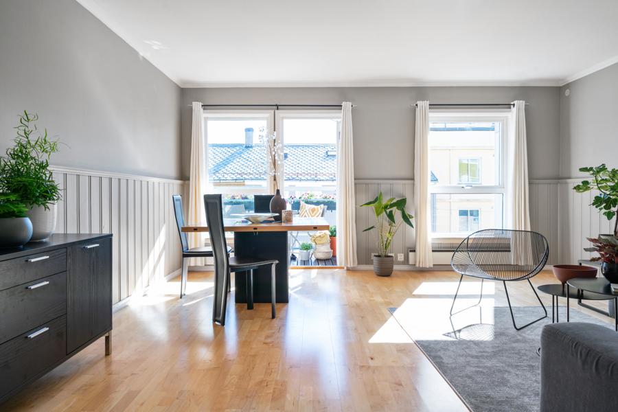 Leiligheten i Birkebeinergaten 1 fra 1988 har en størrelse på 96 m² og inneholder blant annet 2 soverom.