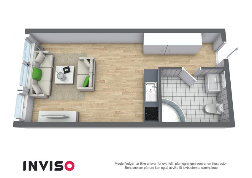 Leiligheten i C. Sundts gate 36 fra 2007 har en størrelse på 24 m² og inneholder blant annet 1 bad.