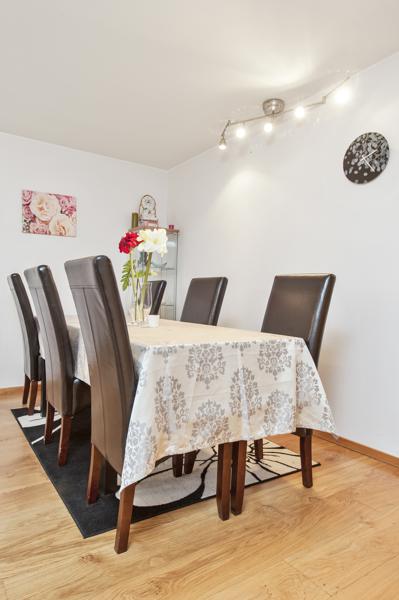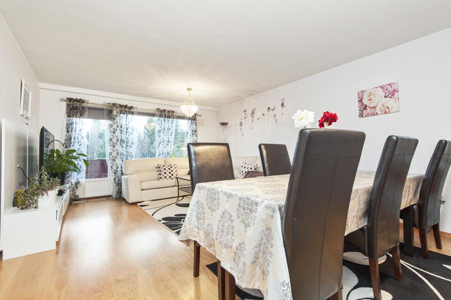 Leiligheten i Dyretråkket 25 fra 1987 har en størrelse på 91 m² og inneholder blant annet 1 bad og 3 soverom. Ifølge eier er dette et barnevennlig område, med turterreng i nærheten. Eiendommen ligger sentralt til med parkering, og balkong/terrasse.