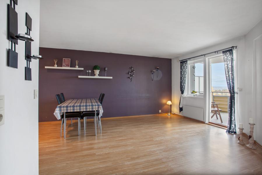 Leiligheten i Høgåsveien 70 fra 1990 har en størrelse på 48 m² og inneholder blant annet 1 bad og 1 soverom. Ifølge eier er dette et barnevennlig område, med turterreng i nærheten. Eiendommen ligger sentralt til med balkong/terrasse.