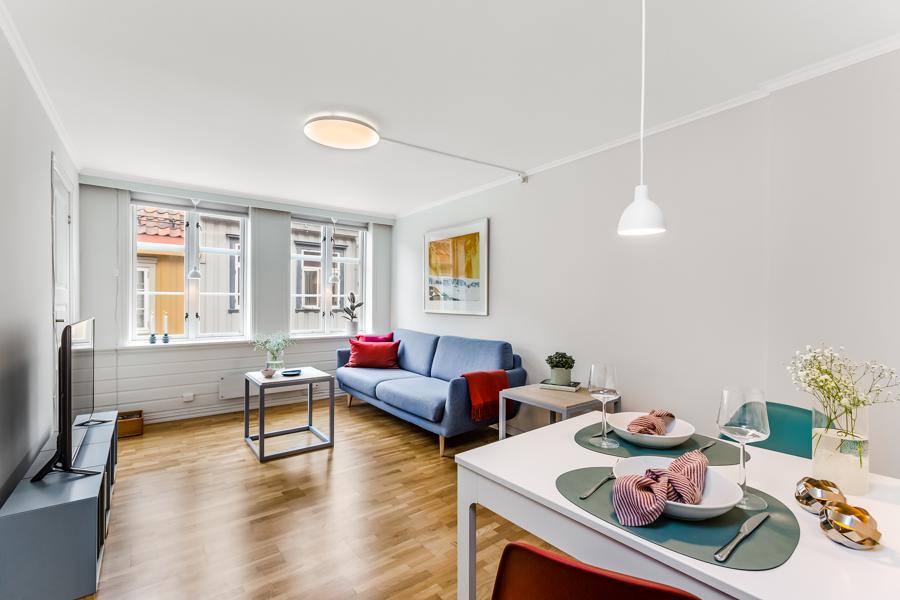 Leiligheten i Kongens gate 39 fra 1757 har en størrelse på 48 m² og inneholder blant annet 1 bad og 2 soverom.