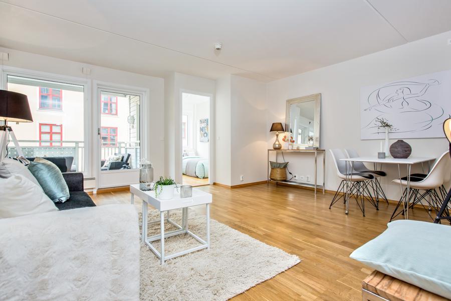 Leiligheten i Kyrre Grepps gate 18 fra 1930 har en størrelse på 62 m² og inneholder blant annet 1 bad og 2 soverom. Ifølge eier er dette et barnevennlig område, med turterreng i nærheten. Eiendommen ligger sentralt til med ildsted.