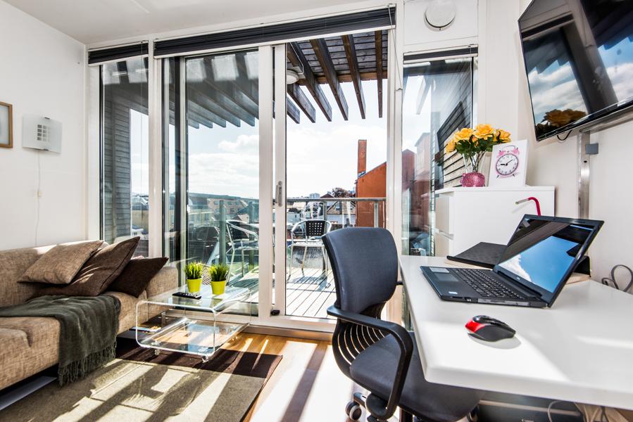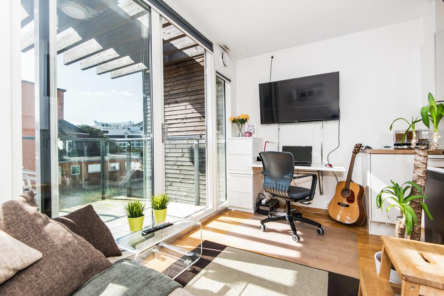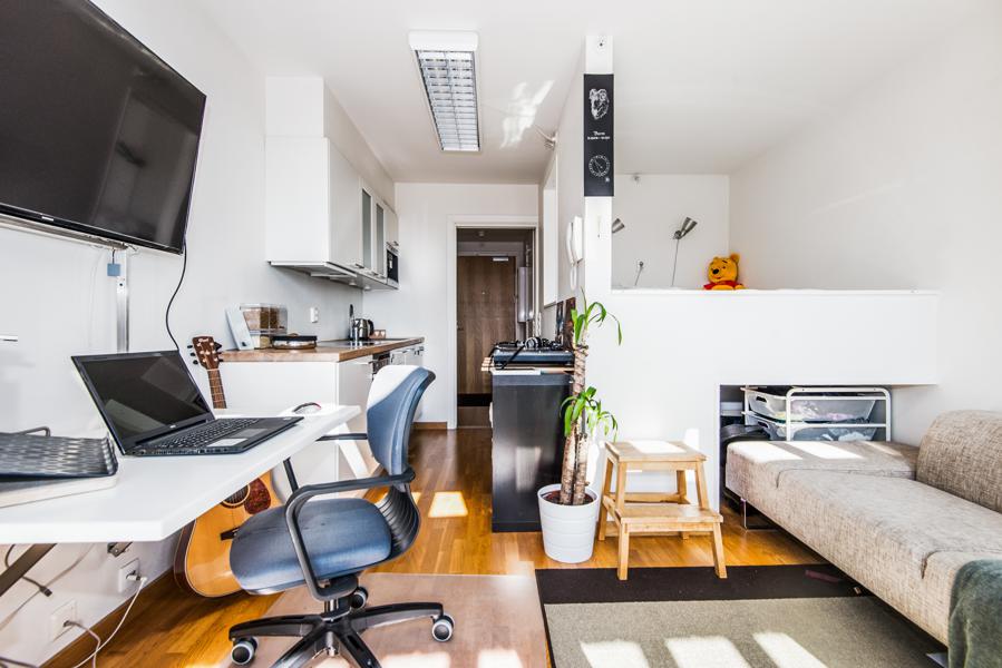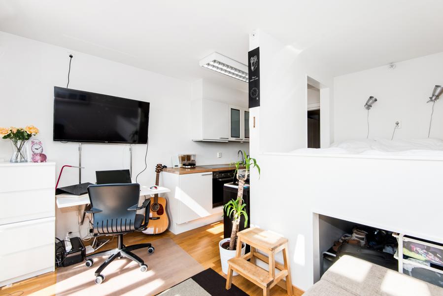 Leiligheten i Nedre Holmegate 9C fra 2007 har en størrelse på 23 m² og inneholder blant annet 1 bad og 0 soverom. Eiendommen ligger sentralt til med heis, og balkong/terrasse.