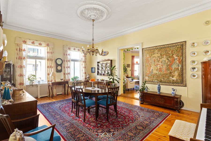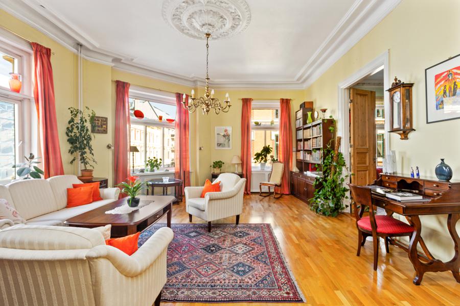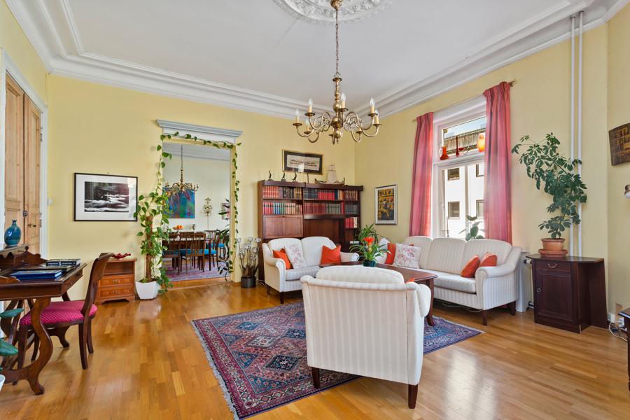 Leiligheten i Niels Juels gate 5 fra 1895 har en størrelse på 140 m² og inneholder blant annet 1 bad og 2 soverom. Eiendommen ligger sentralt til med parkering, ildsted, og balkong/terrasse.