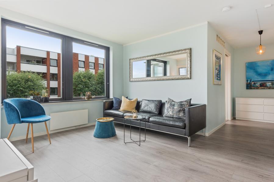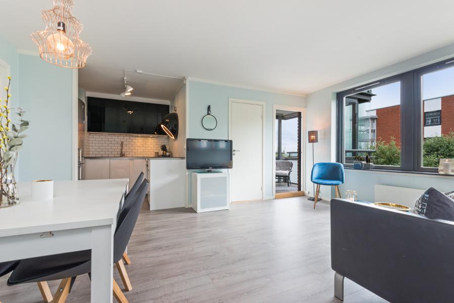 Leiligheten i Olavs gate 2 fra 1968 har en størrelse på 51 m² og inneholder blant annet 2 soverom. Eiendommen ligger sentralt til med heis, og balkong/terrasse.