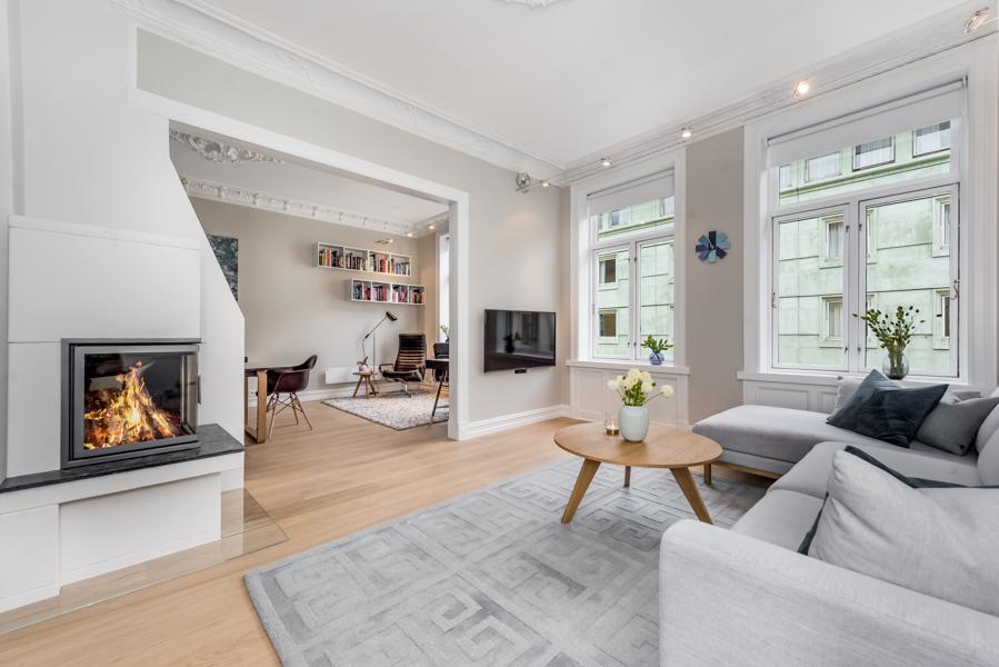 Leiligheten i Ole Vigs gate 8B fra 1936 har en størrelse på 81 m² og inneholder blant annet 1 bad og 2 soverom.