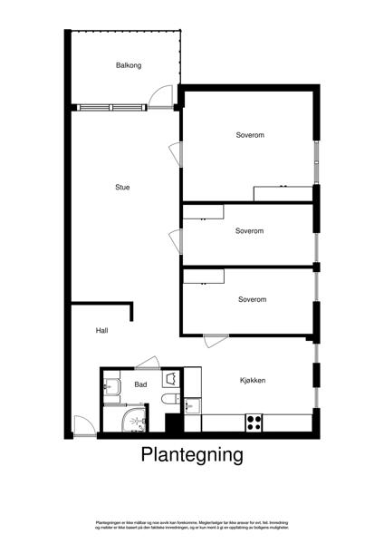 Leiligheten i Oluf Melvolds gate 66 fra 1964 har en størrelse på 84 m² og inneholder blant annet 1 bad og 3 soverom.