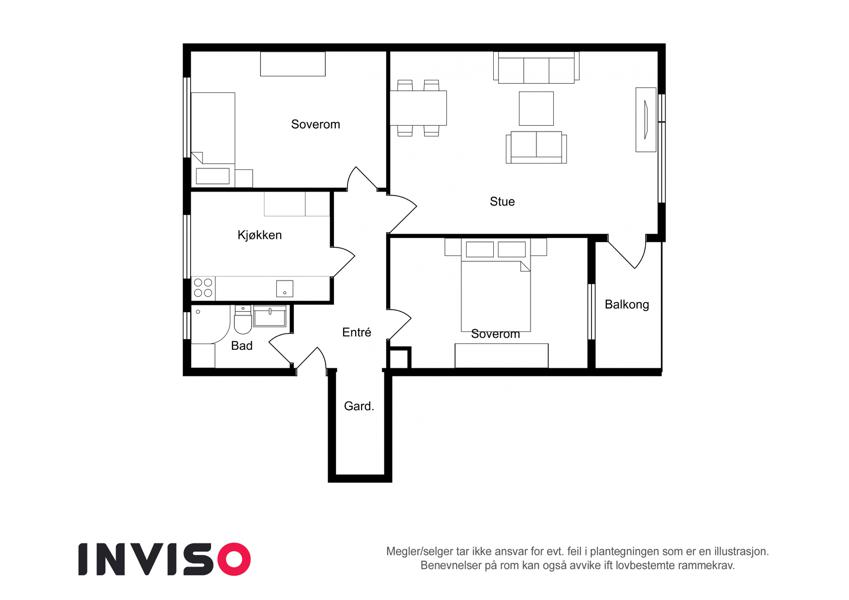 Leiligheten i Rugdeveien 38 fra 1958 har en størrelse på 72 m² og inneholder blant annet 2 soverom.