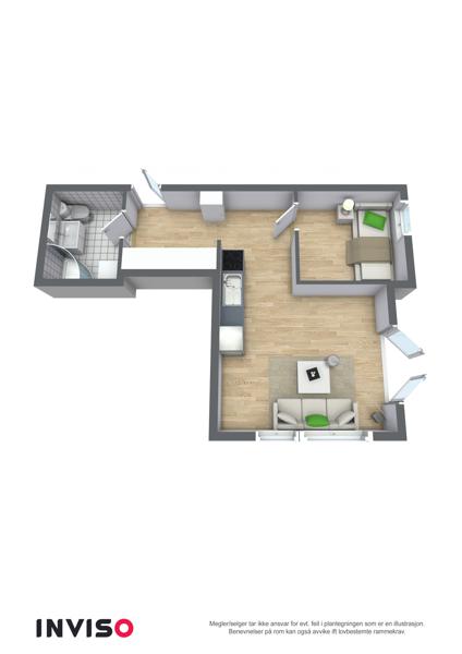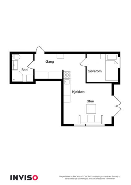 Leiligheten i Sandviksveien 94 fra 1960 har en størrelse på 31 m² og inneholder blant annet 1 bad og 1 soverom.