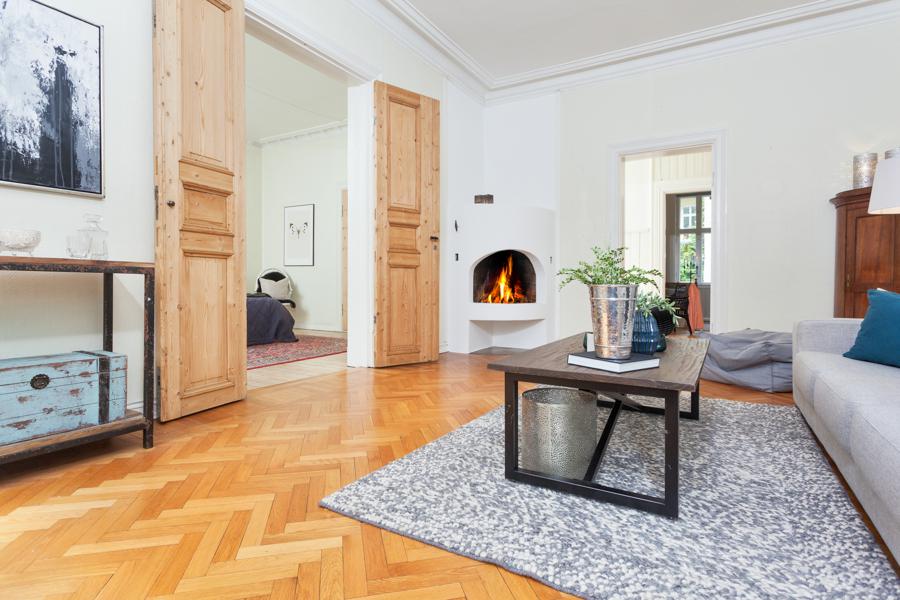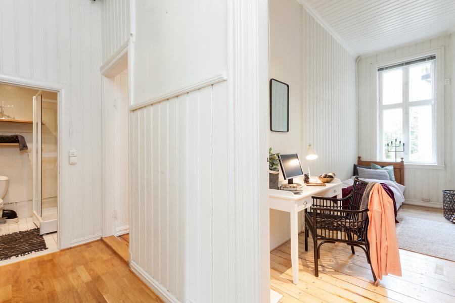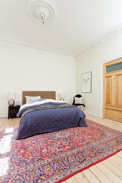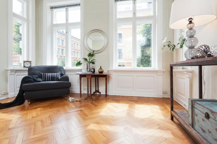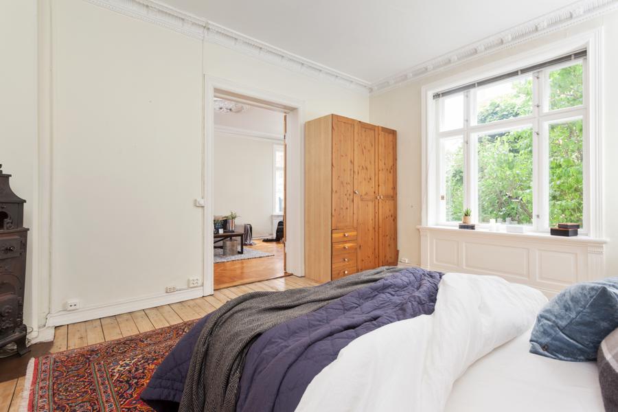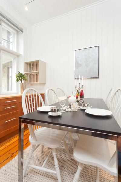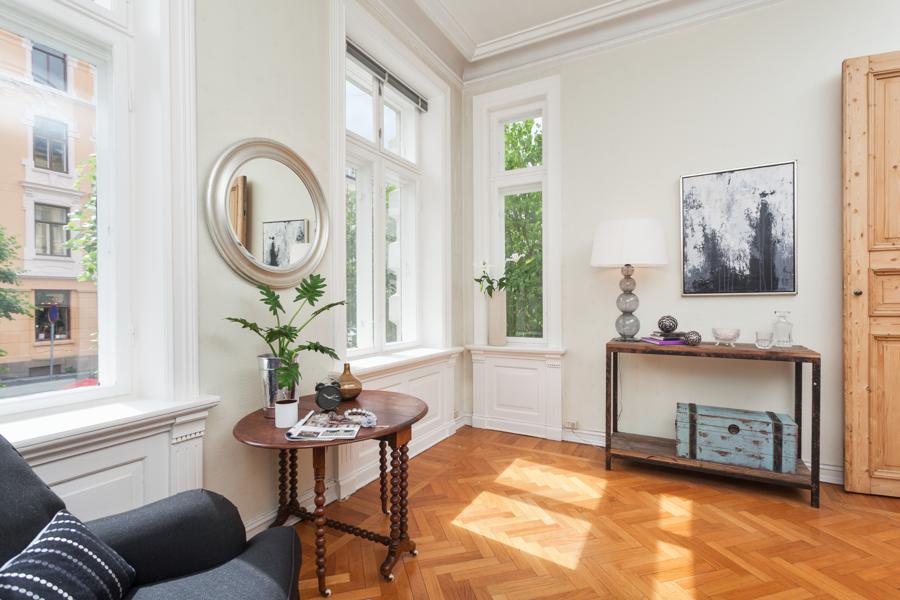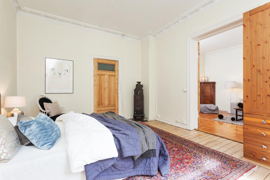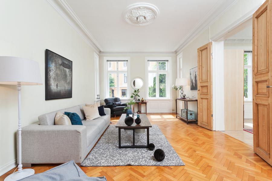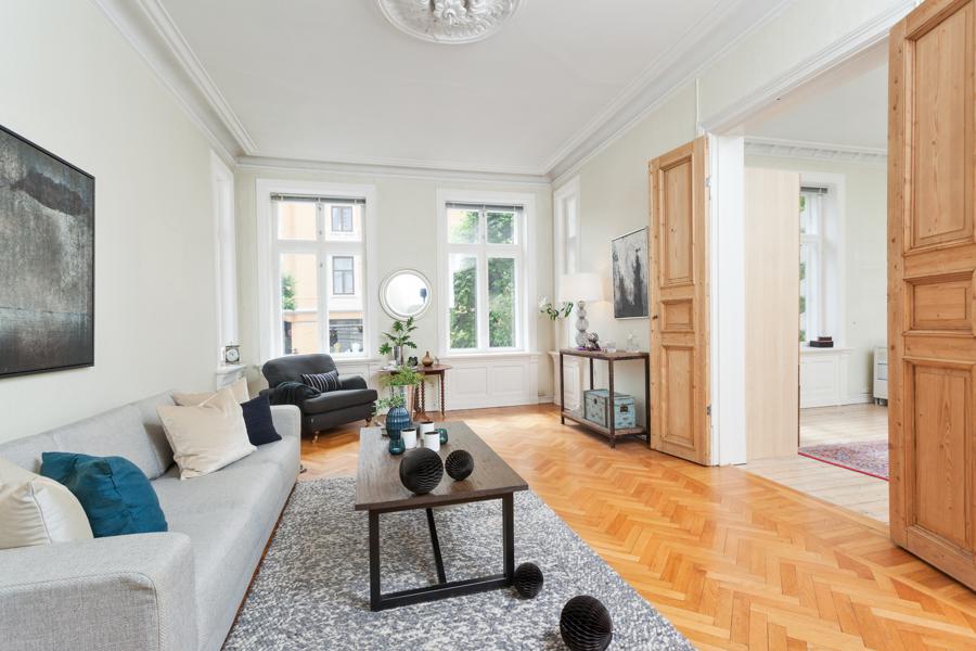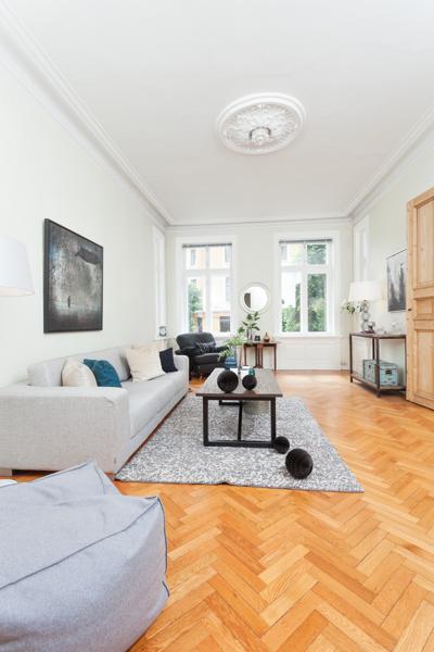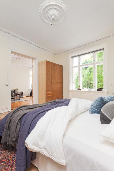 Leiligheten i Skovveien 16 fra 1893 har en størrelse på 129 m² og inneholder blant annet 2 bad og 3 soverom. Ifølge eier er dette et barnevennlig område. Eiendommen ligger sentralt til med ildsted.