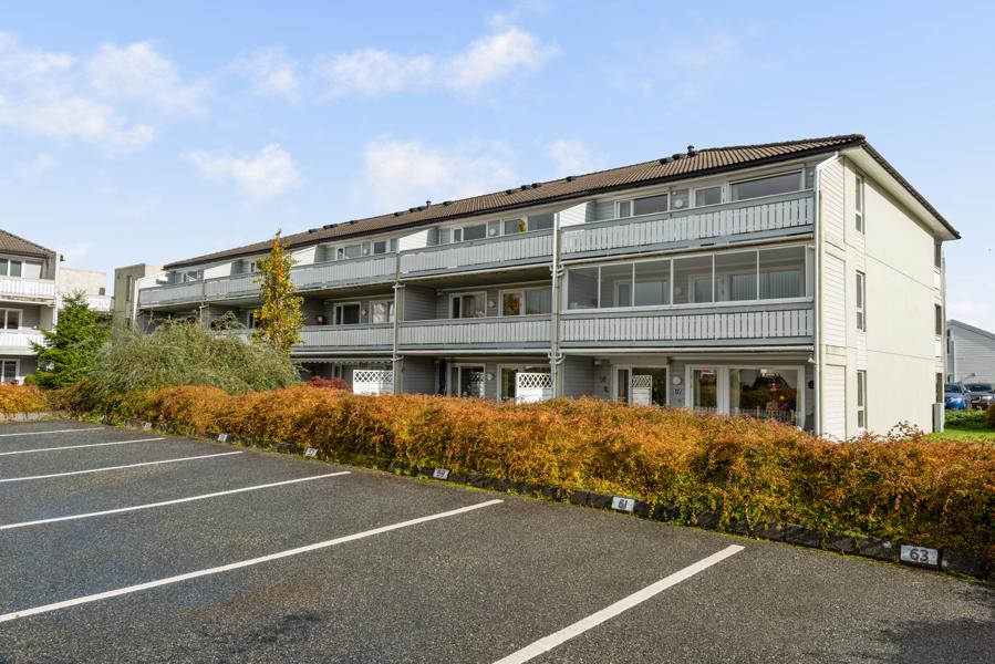 Leiligheten i Smievegen 93 fra 1992 har en størrelse på 77 m² og inneholder blant annet 1 bad og 2 soverom. Eiendommen ligger sentralt til med heis.