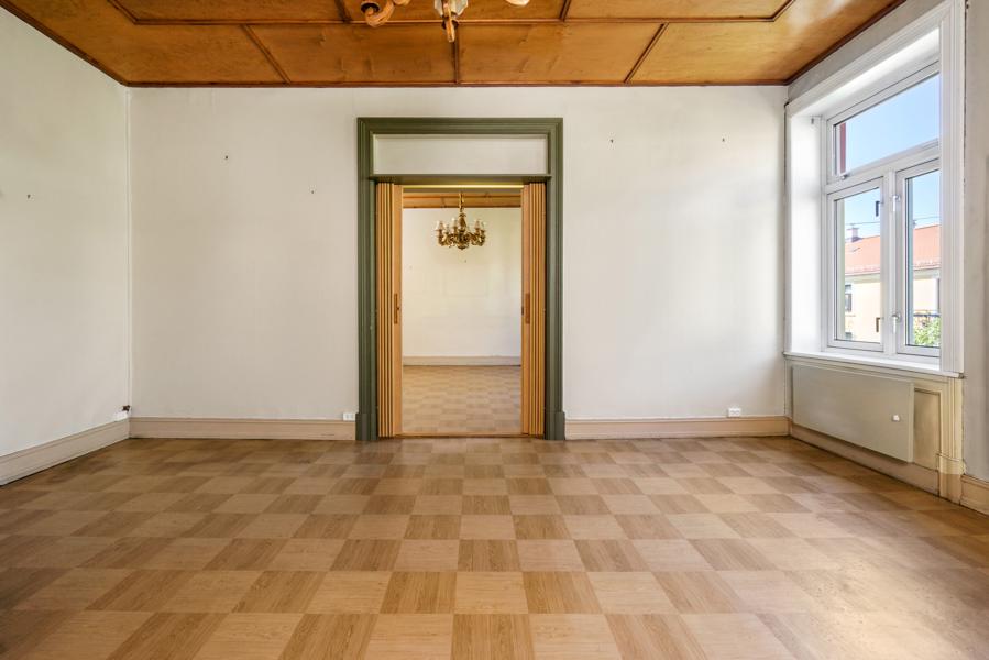 Leiligheten i Sorgenfrigata 25 fra 1912 har en størrelse på 103 m² og inneholder blant annet 2 soverom.