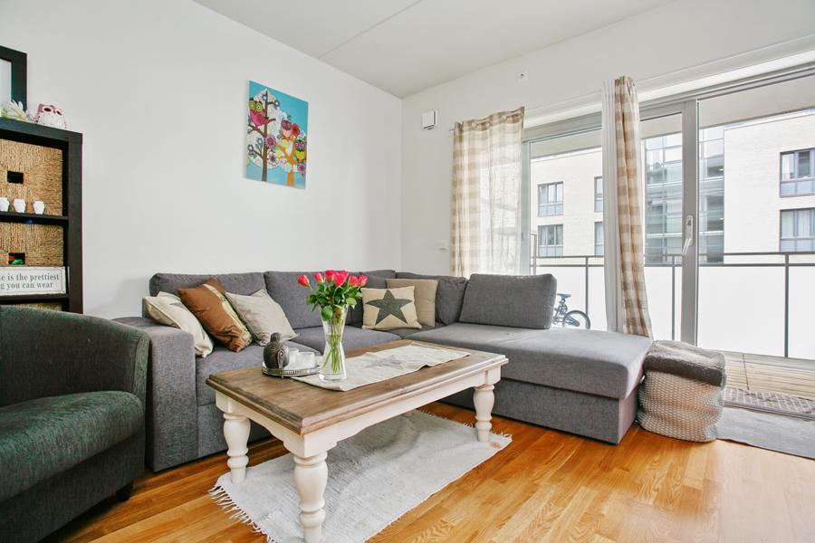 Leiligheten i Støperiveien 8 inneholder blant annet 1 bad og 2 soverom.