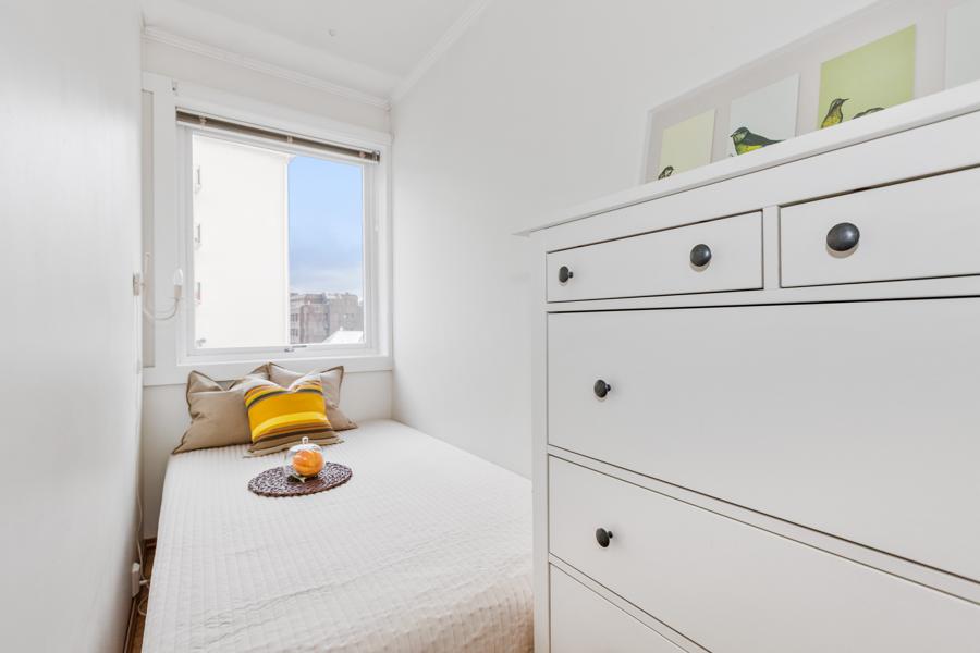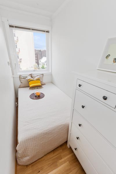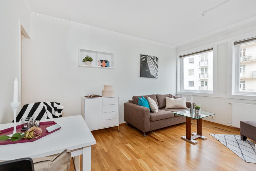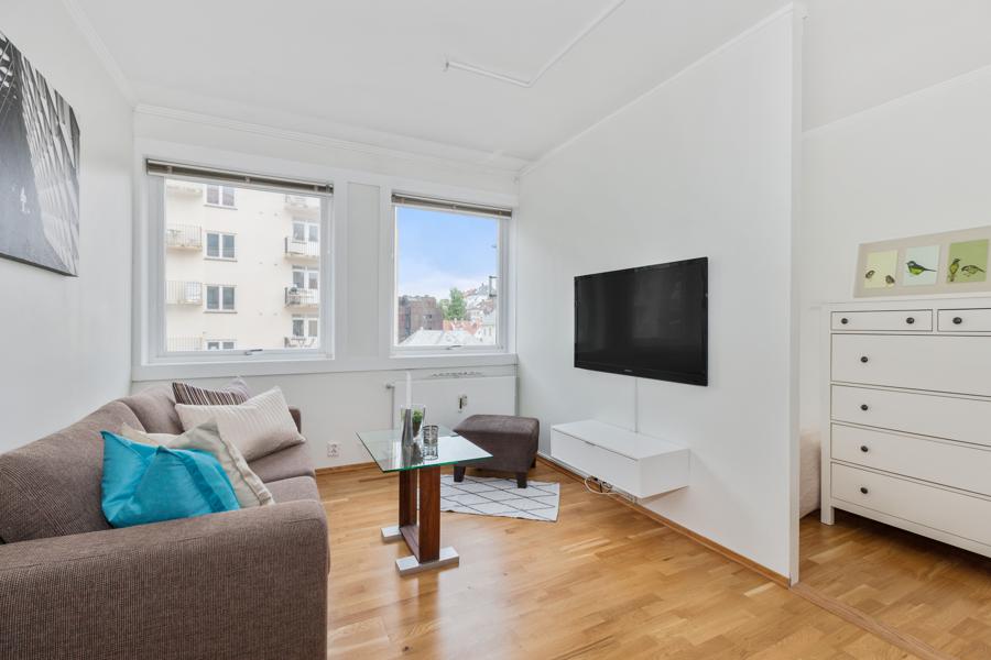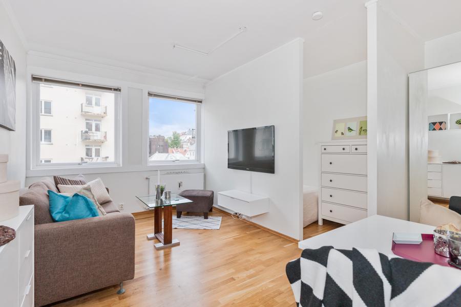 Leiligheten i Strandgaten 203 fra 1956 har en størrelse på 27 m² og inneholder blant annet 1 bad og 1 soverom. Ifølge eier er dette et barnevennlig område, med turterreng i nærheten. Eiendommen ligger sentralt til med heis.