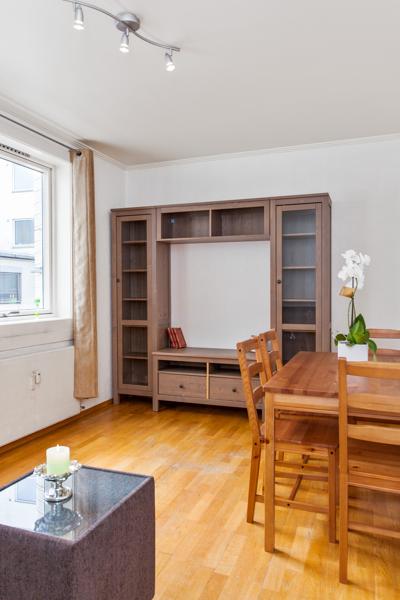 Leiligheten i Strandgaten 203 fra 1956 har en størrelse på 23 m² og inneholder blant annet 1 bad. Eiendommen ligger sentralt til med heis.