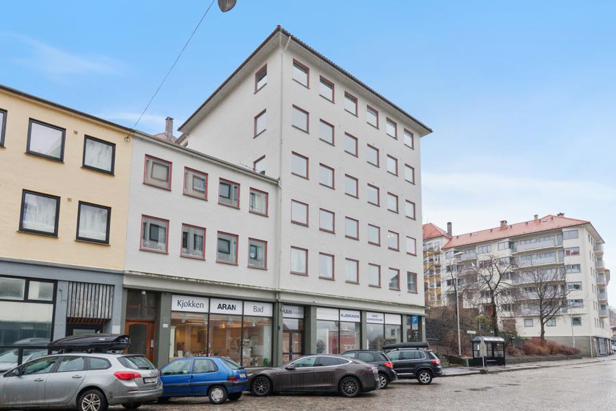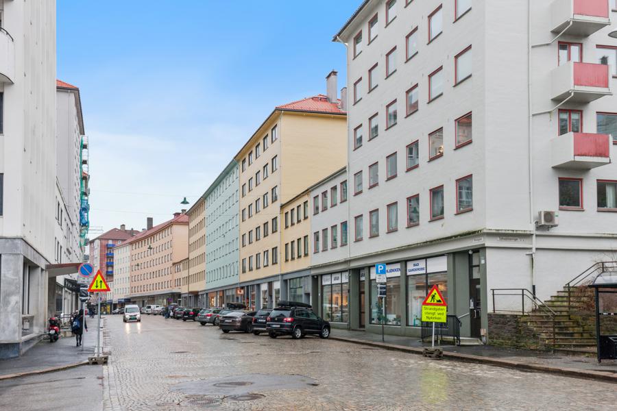 Leiligheten i Strandgaten 214 214 fra 1957 har en størrelse på 63 m² og inneholder blant annet 3 soverom. Eiendommen ligger sentralt til med heis, og ildsted.