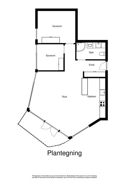 Leiligheten i Sverdrups gate 36 fra 2004 har en størrelse på 63 m² og inneholder blant annet 1 bad og 2 soverom.