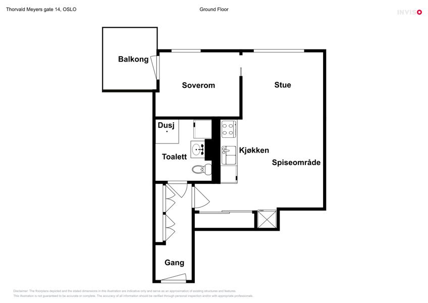 Leiligheten i Thorvald Meyers gate 14 inneholder blant annet 1 bad og 1 soverom.