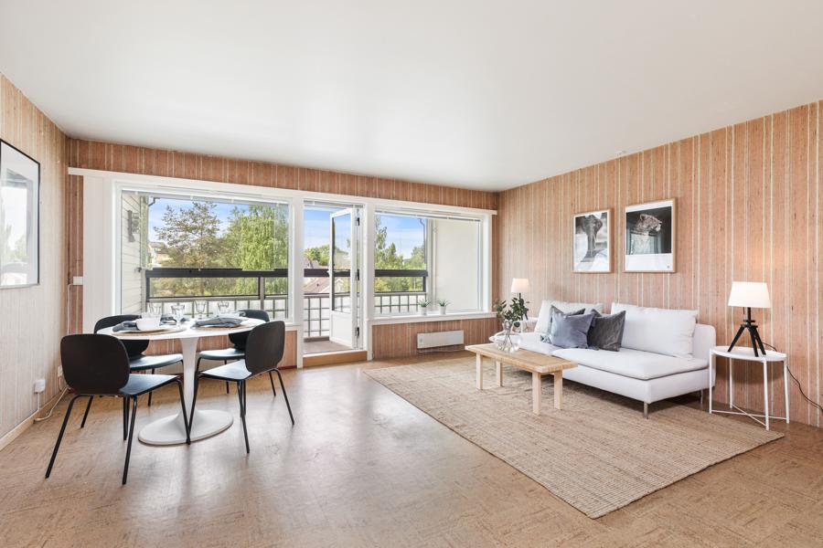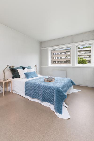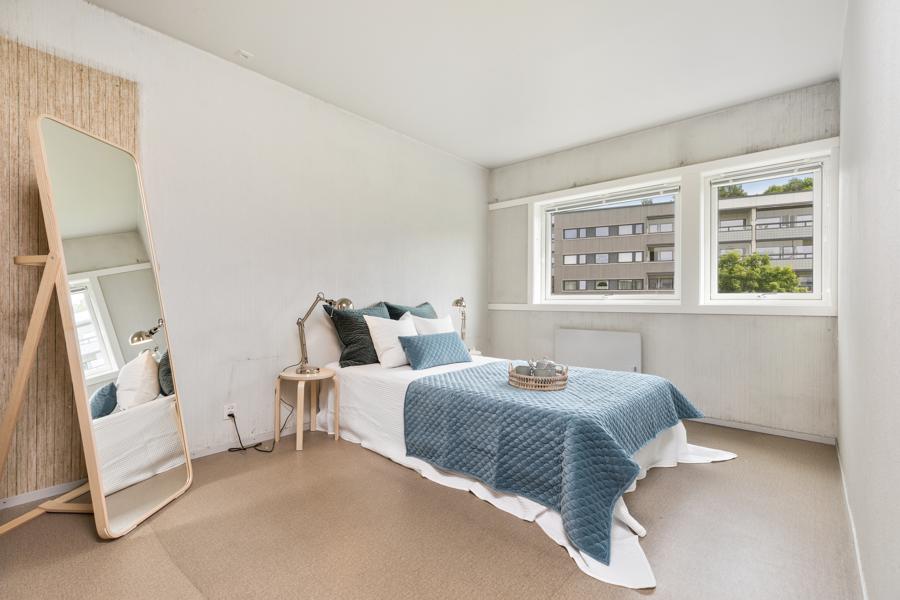 Leiligheten i Vestre Haugen 16 fra 1974 har en størrelse på 103 m² og inneholder blant annet 1 bad og 3 soverom. Eiendommen har parkering.